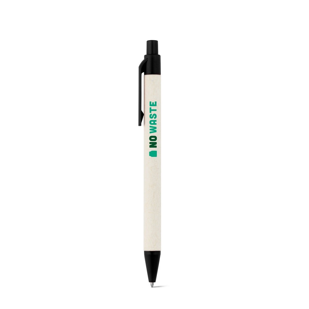Eco friendly ballpoint pen with click action mechanism, with a barrel made of biodegradable paper material, and corn plastic trims that comes in a variety of colours. Recycled carton colour may vary.