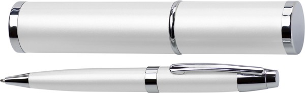 Bolígrafo metálico con. Presentado en un estuche tubular a juego.