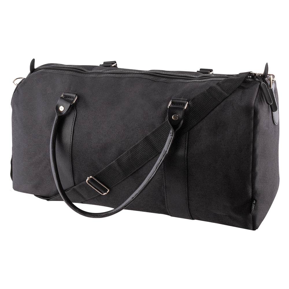 Bolsa de viaje de gran capacidad, fabricada en poliéster RPET, con asas para cómodo agarre y asa larga de 120 cm ajustable para el hombro.