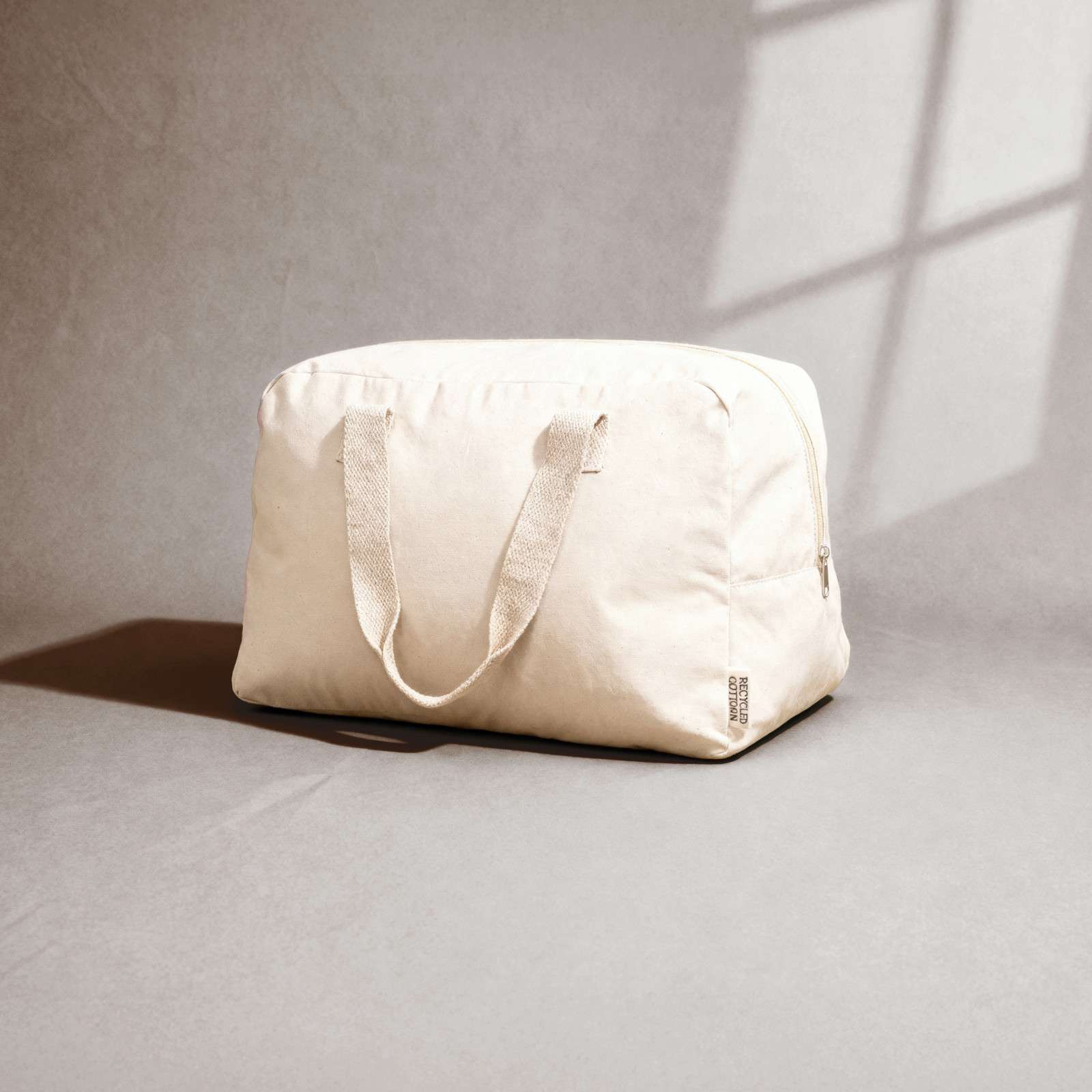 Bolsa con asas de agarre fabricada en algodón canvas reciclado de 280 gr/m².