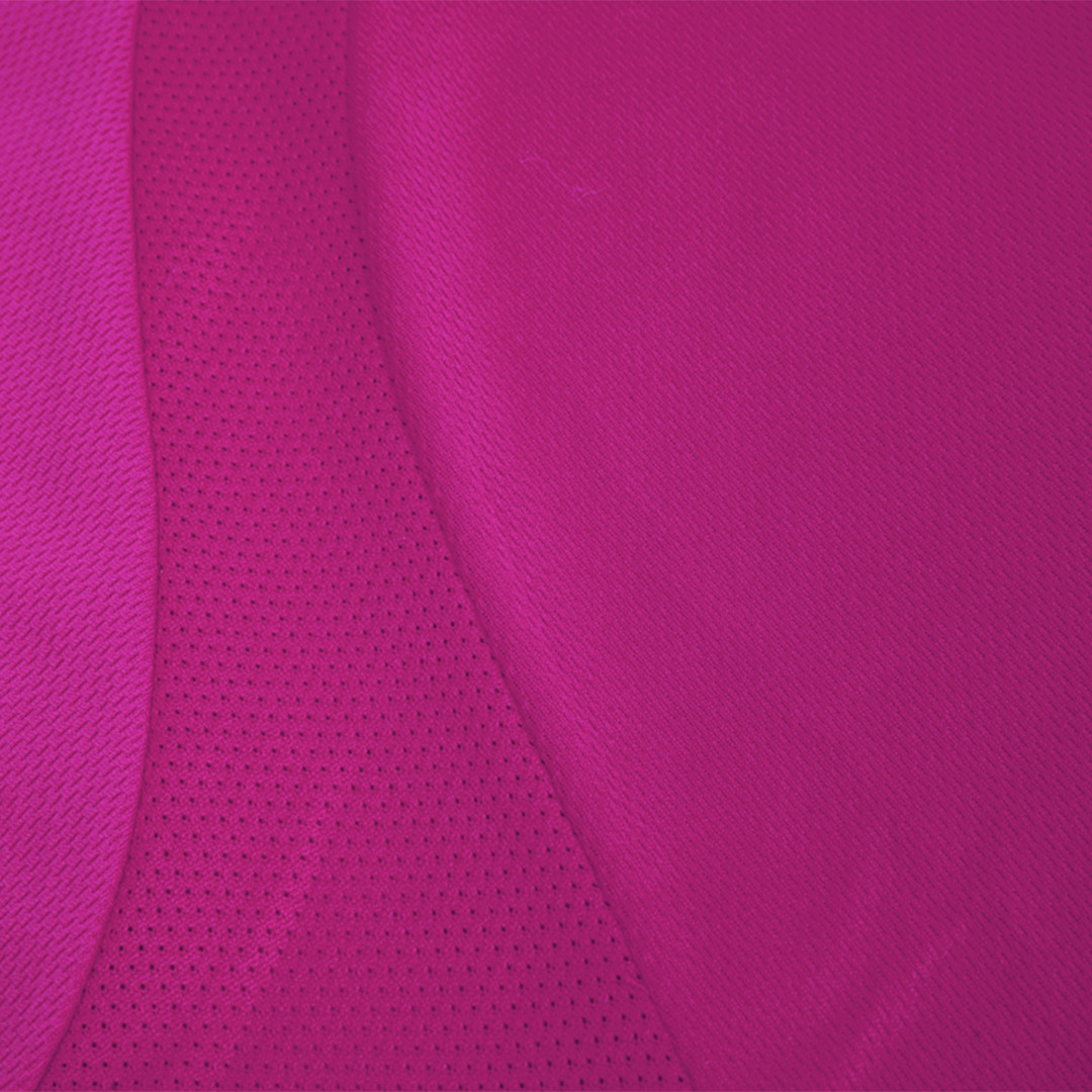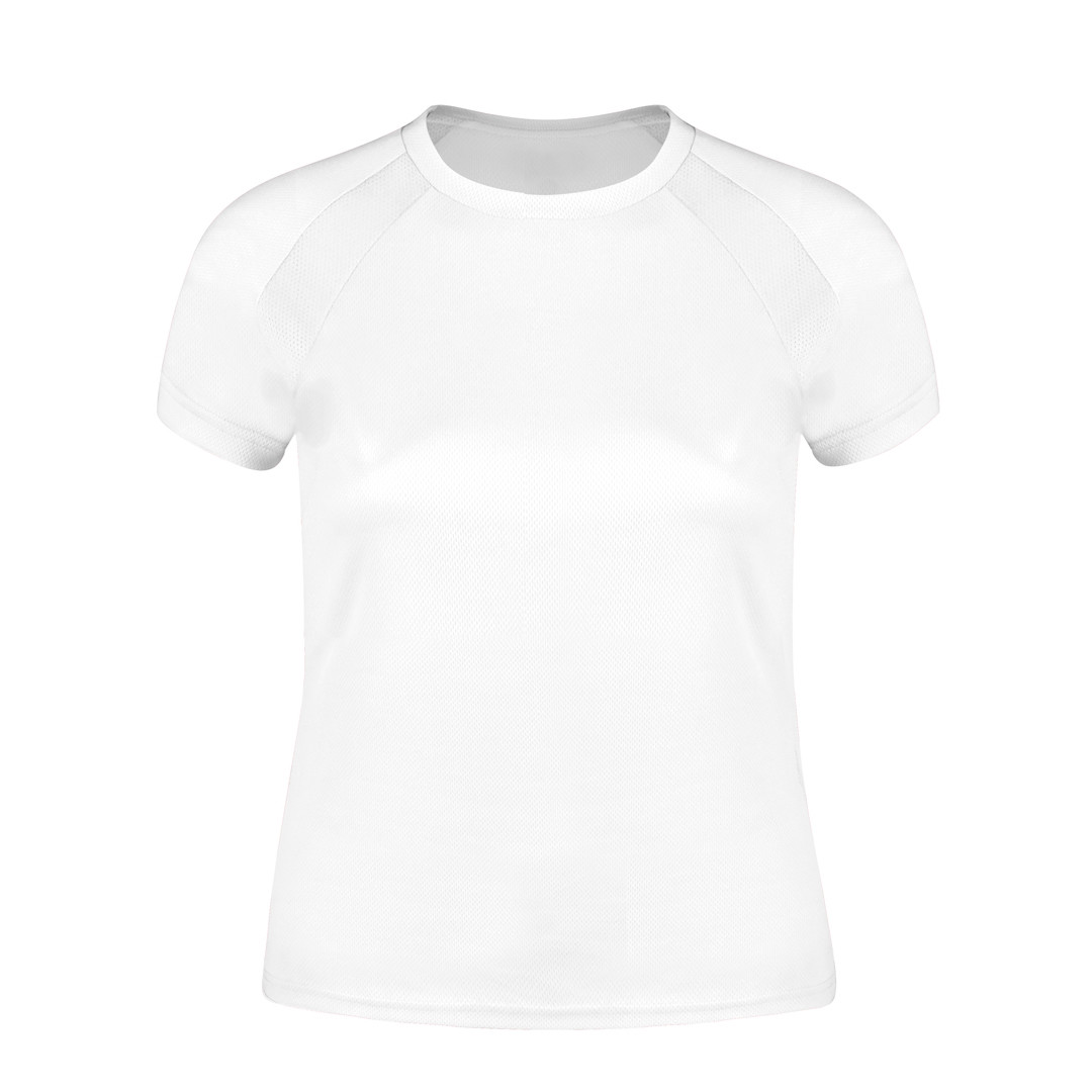 Camiseta técnica para mujer en material 100% poliéster transpirable de 135g/m2. Con manga ranglán, cuello redondo y con bandas frontales y laterales en tejido transpirable microperforado. Disponible en tallas S, M, L, XL. Transpirable