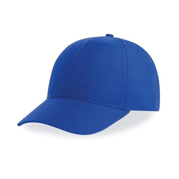 Gorra de béisbol clásica en poliéster 100% reciclado certificado. Con 6 paneles, visera curva, cierre de velcro, 6 ojales y totalmente cosido. Sarga de poliéster reciclado 100% certificado.