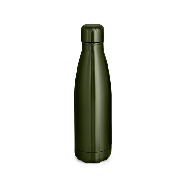 Botella de acero inoxidable con doble pared y aislamiento al vacío. Botella con acabado metalizado y tapón de acero inoxidable. Capacidad hasta 510 ml. Se suministra en una caja de regalo de papel kraft. ø70 x 255 mm | Caja: 72 x 72 x 275 mm