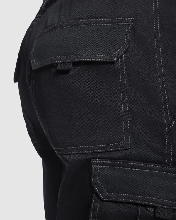 65% poliester / 33% algodão / 2% elastano, sarja, 250 g/m².