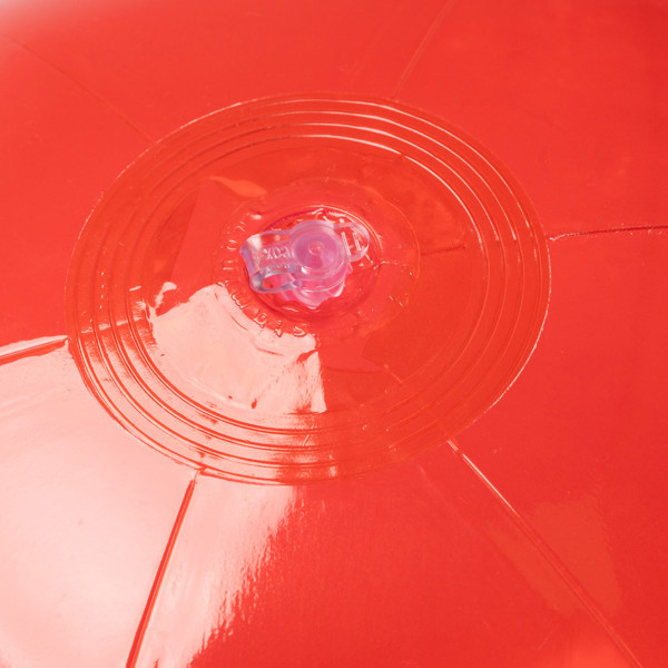 Bola de praia em PVC translúcido. Vazia: 37 cm. Cheia: 28 cm.