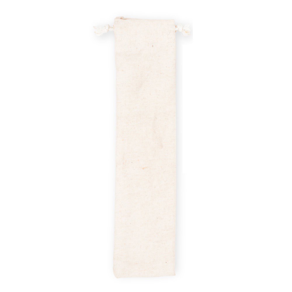 Conjunto de talheres composto por 3 peças: 1 colher, 1 garfo e 1 faca em aço inoxidável com pegas em madeira. Fornecido num saco de algodão. Por ser um produto composto por materiais naturais, a cor do produto e o resultado da impressão podem variar entre produtos. Saco: 250 x 60 mm