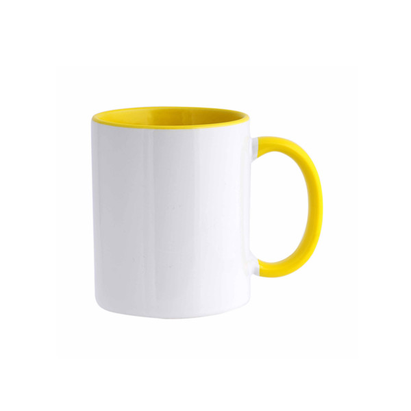 Caneca de cerâmica bicolor para sublimação. Caneca de grade A, com interior colorido, a combinar com a asa. Ideal para sublimar com uma imagem da sua preferência. 325ml de capacidade, apta para micro-ondas. Caixa branca de oferta.