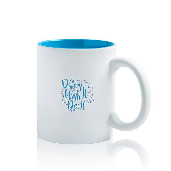 Caneca de cerâmica, Matte Popmug com capacidade para 325ml, exterior branco com toque de borracha e interior de cores variadas. Esta caneca é ótima para personalização a laser, visto que a gravação sai colorida. Não está apta para usar no micro-ondas. 325 ml de capacidade. Caixa branca de oferta.