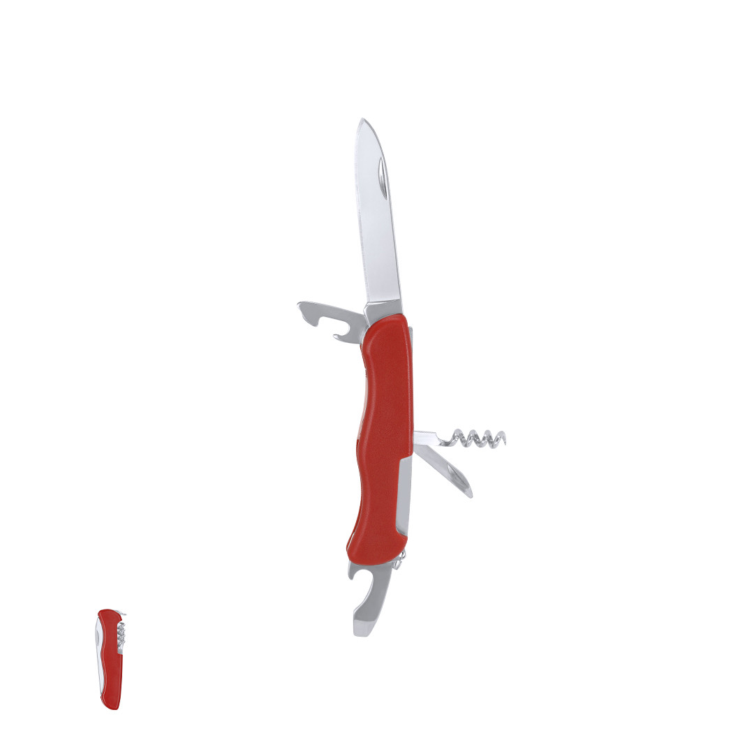 Canivete multiusos com acessórios em aço inoxidável com 5 funções, com revestimento ABS resistente. Inclui faca, punção, saca-rolhas, abridor de latas e abridor de garrafas. 5 Funções