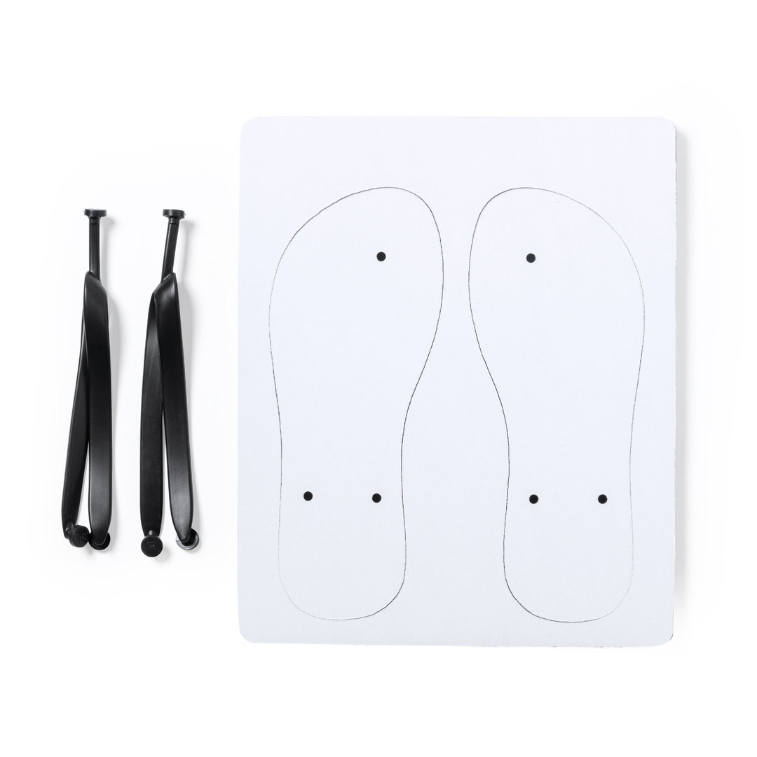Par de chinelos com sola 100% personalizável e especialmente desenhados para impressão em sublimação. Com resistente sola de EVA, tiras de PVC de cor preto e disponíveis em dois tamanhos: 36-38 e 42-44. Conjunto composto de folha de EVA cortada para personalização. Tamanhos: 36-38, 42-44