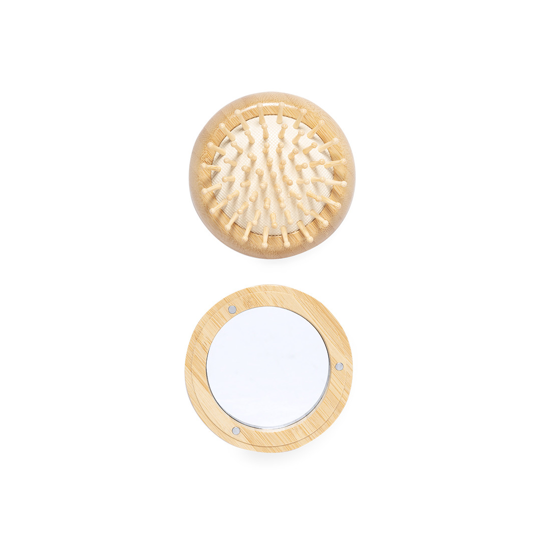 Original escova com espelho fabricada em bambu natural. A sua união magnética e o seu compacto tamanho convertem-na num perfeito acessório para o dia a dia. Apresentada em caixa individual de design kraft.Materiais como o bambu fomentam a utilização de matérias-primas naturais reduzindo as emissões poluentes. Além disso, o bambu provém de uma planta de grande resistência e versatilidade, com crescimento e regeneração rápida, sendo uma excelente alternativa ao uso de madeira tradicional.