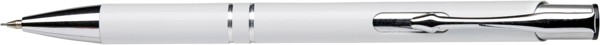 Esferográfica de alumínio lacado com botão de pressão e dois anéis decorativos no corpo. Escrita azul. Fornecida com tinta Dokumental alemã.