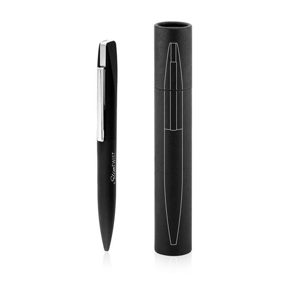 Sofisticação e Sustentabilidade para clientes Premium. A Slim Twist é uma ferramenta de escrita sofisticada e refinada que transmite luxo e qualidade. Produzida em aço inoxidável reciclado, esta esferográfica proporciona uma escrita muito suave. Tem um design simples, mas elegante, tornando-a perfeita para presentes empresariais mais exclusivos. O aço inoxidável tem uma das mais altas taxas de reciclagem entre os metais (90%), pode ser derretido e reutilizado na produção de novos produtos, reduzindo a necessidade de novas minerações e extração de matérias-primas. Além disso, a longa durabilidade do aço inoxidável, os baixos requisitos de manutenção, a eficiência energética e a versatilidade tornam-no uma escolha perfeita quando o cliente pretende soluções sustentáveis, reduzindo a sua pegada carbónica.