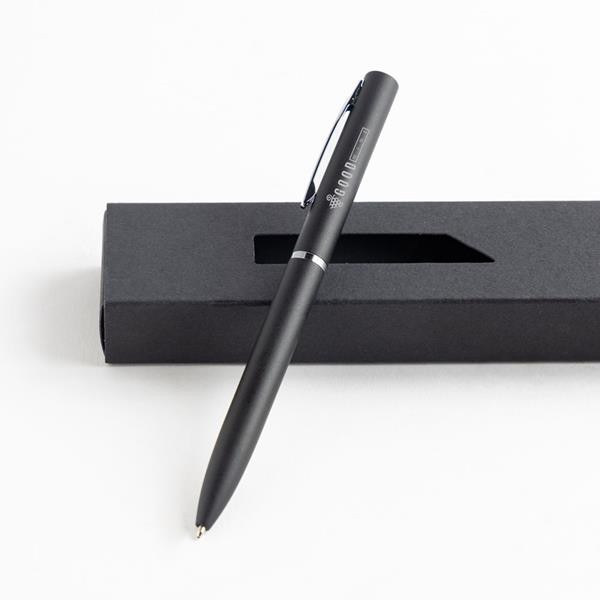 Esferográfica de alumínio com corpo revestido a borracha, escrita azul e sistema de pulsar. Os detalhes em acabamento Gun Metal conferem-lhe um aspeto moderno e profissional.A elevada qualidade do material garante uma impressão do logótipo fácil e precisa. Disponível em várias cores, alia a resistência do alumínio ao toque suave da borracha, complementado por elegantes detalhes em cinzento.