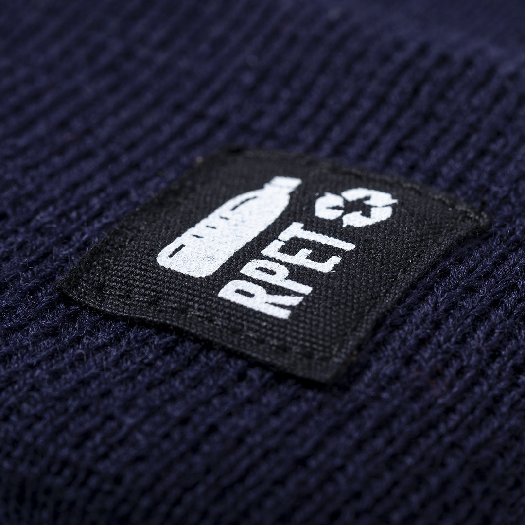 Gorro de malha macio e quente de linha nature e em poliéster RPET, elaborado a partir de plástico reciclado para assim incentivar a reutilização de resíduos plásticos e contribuir para a sustentabilidade do planeta. Com bainha frontal e disponível numa variada gama de cores. Distintivo RPET na etiqueta exterior.