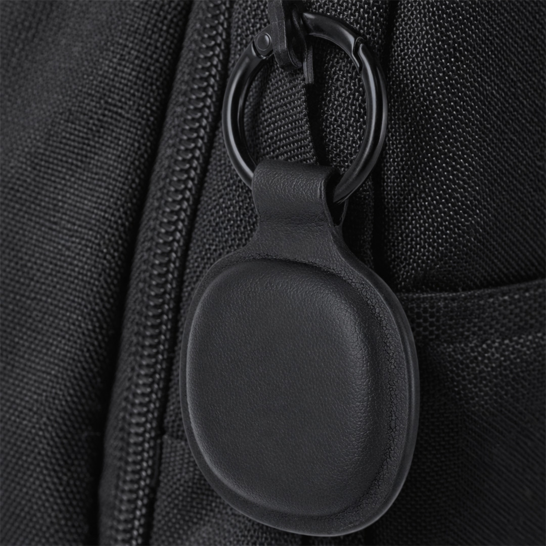 Smart locator com design elegante de PU. Com um sistema de dupla ligação, compatível com o Apple Find My e o Android Find Hub, que lhe permite rastrear os seus pertences em tempo real, de forma rápida e precisa. Inclui um anel metálico em elegante cromado preto. Bateria de botão incluída. Pilha Botão Incluída
