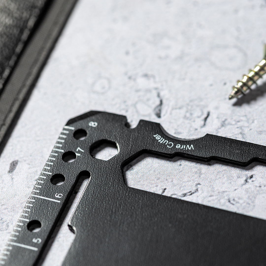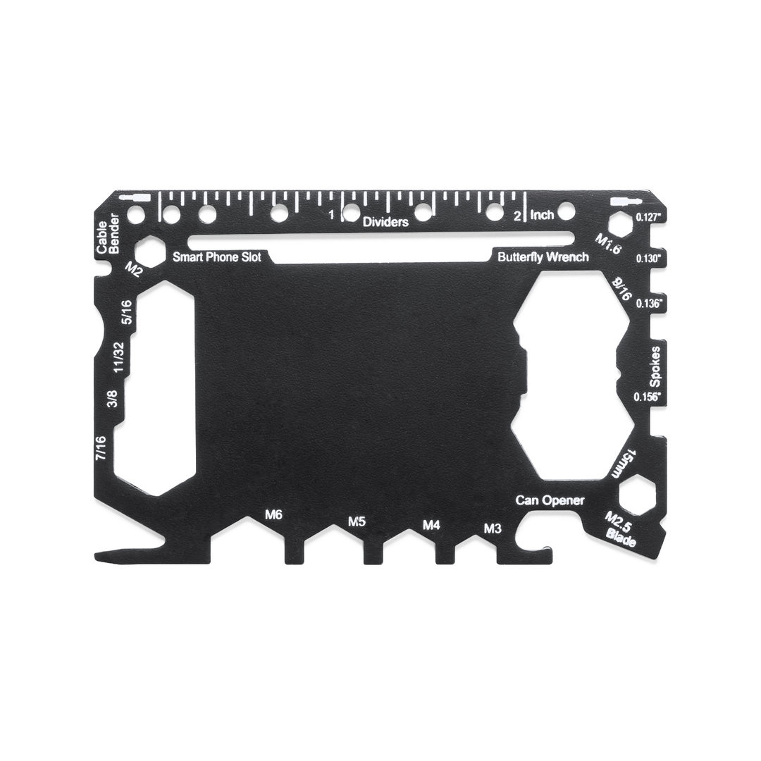 Multi-ferramentas com resistente corpo em aço inox e 17 funções. Entre outras, funções abre-latas, colher, chave de fendas, régua, saca-rolhas, chave inglesa, chave de mariposa e transportador de ángulos. 17 Funções. Bolsa PU
