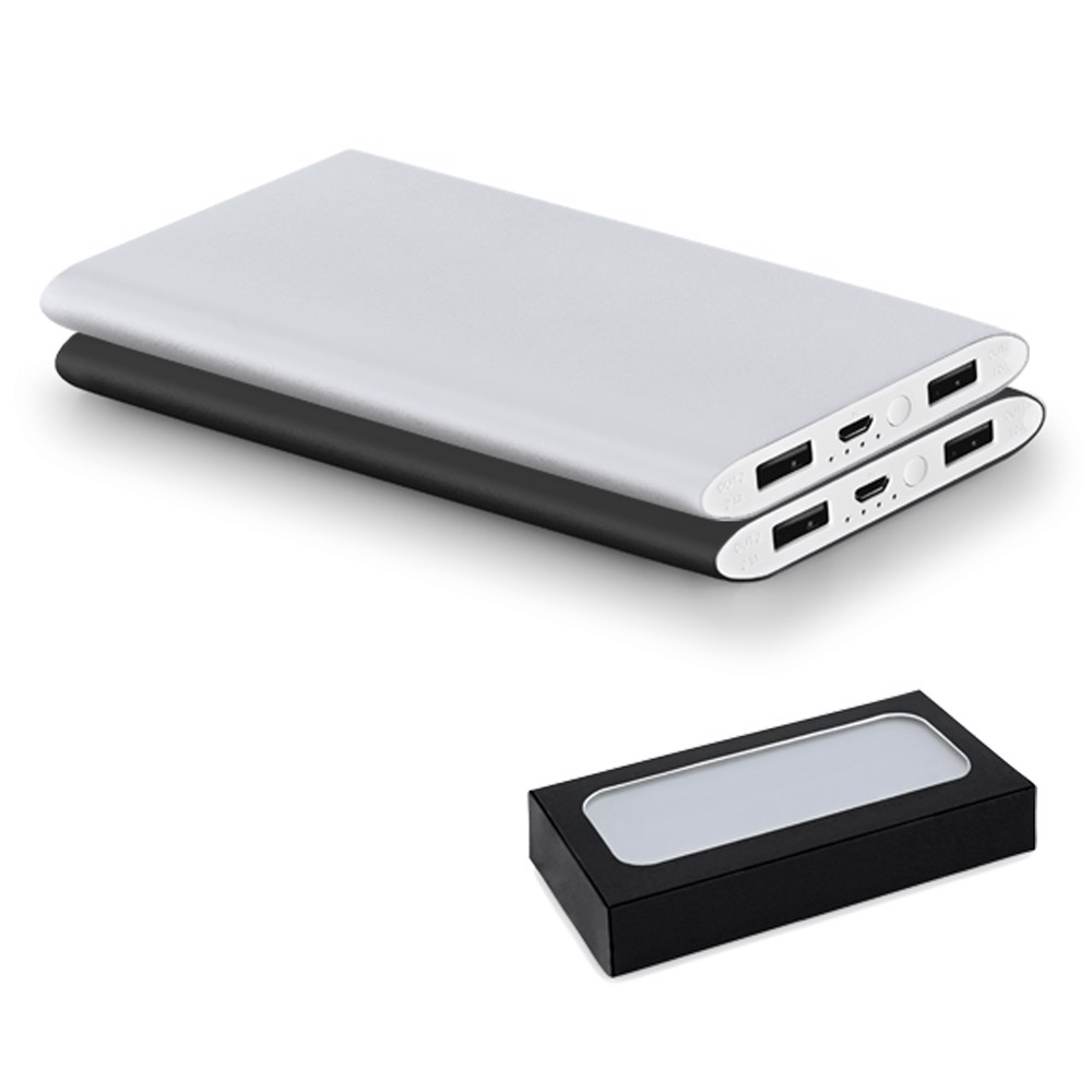 Power bank 2 em 1 com lanterna LED, ideal para situações de emergência. O indicador LED do nível de carga da bateria permite saber facilmente quando recarregar.Material: alumínio reciclado (100% rAL)Capacidade: 7'200 mAhEntrada: USB-C (10W)Saída: 2 x USB-A (5W/10W)Inclui: cabo USB-A / USB-CFornecimento: caixa de oferta em papel kraftDimensões: 150 x 74 x 12 mm | Caixa: 165 x 80 x 20 mm