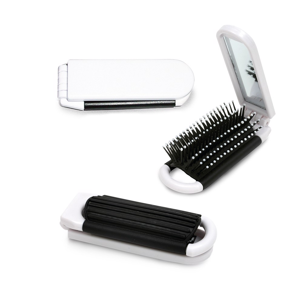 Espelho de bolsa com escova dobrável. 105 x 35 x 25 mm