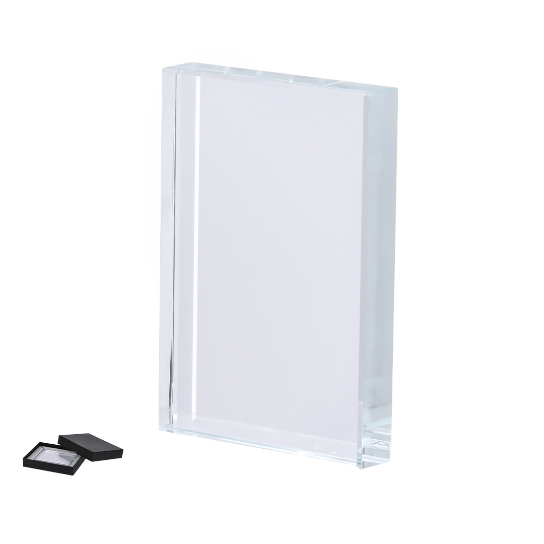 Placa elegante em cristal, com sofisticado design retangular, ideal para gravação a laser. Apresentada em estojo individual com fecho magnético e interior em distinto cor preta, proporcionando um toque diferenciado.