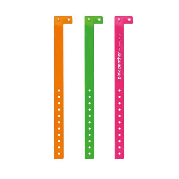 Pulseira de identificação inviolável fluorescente em vinil. Para as festas, eventos ou locais onde precisa de controlar as entradas, apresentamos-lhe a opção de pulseira em vinil, resistente à água e inviolável. Personalize-a e tenha um controlo que se pode tornar numa recordação. Em gama de cores fluorescentes variadas.