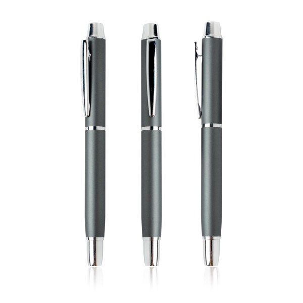 Conjunto De Esferográfica E Roller Em Metal, Estojo De Oferta - Cinza Escuro