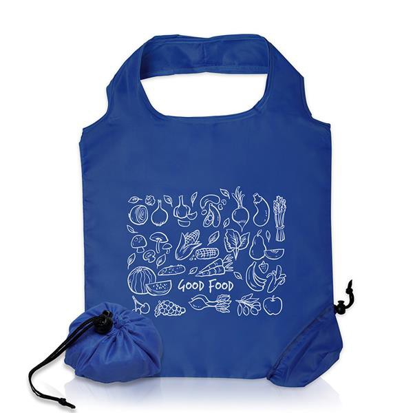 Saco dobrável em P-190T. Com este saco que pode levar consigo a todo o lado, pode finalmente deixar de ter desculpas para comprar sacos de plástico! O saco recolhe, até ficar guardado em formato de bola. Com atilho para fechar.