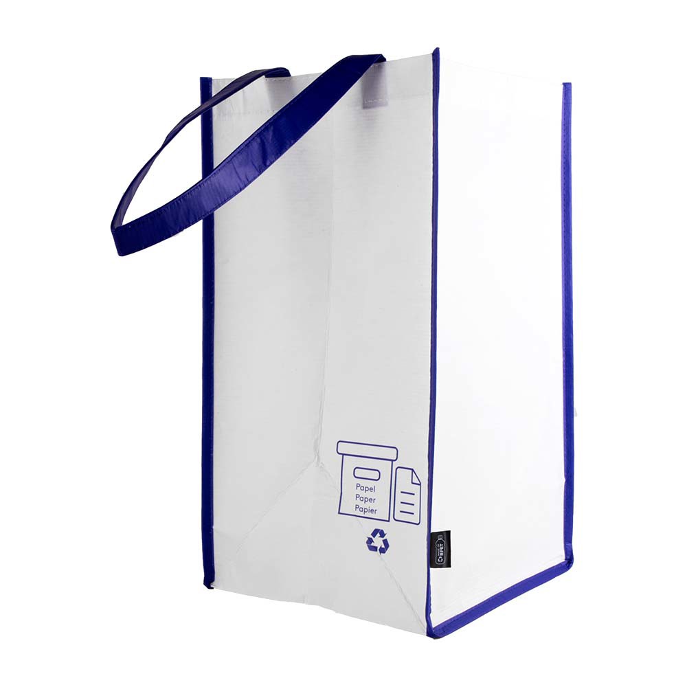 Conjunto de 3 sacos em RPET para reciclar 3 tipos de resíduos básicos (vidro, plástico e papel). União por velcro.