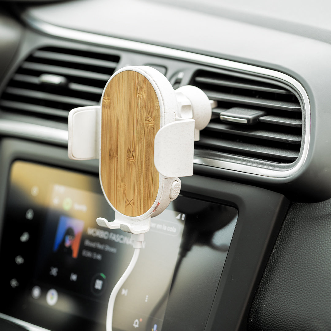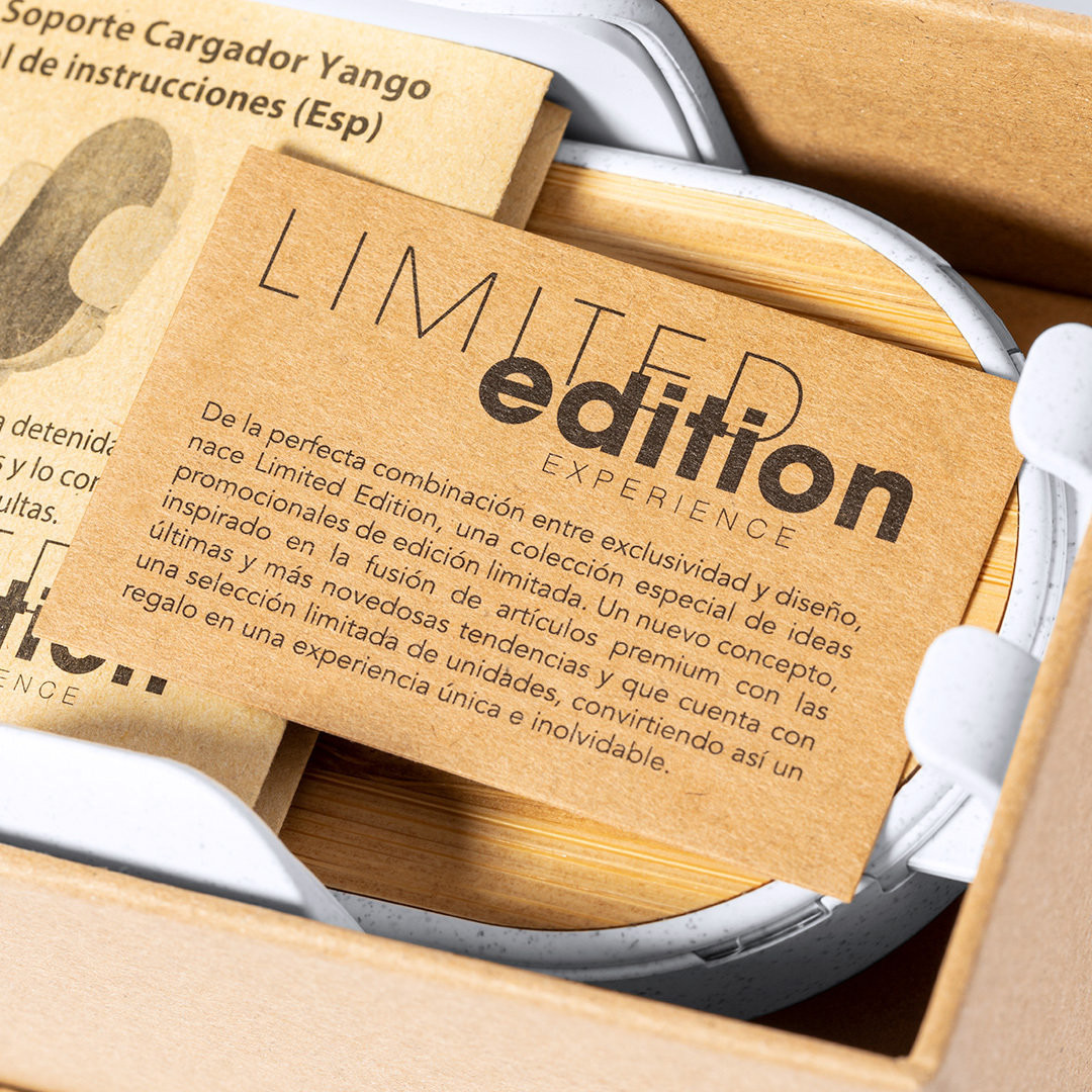 Suporte Carregador sem fios de Carro Limited Edition. Um estilo inovador, onde ecologia e design e última tecnologia se combinam numa qualidade premium. Fabricado em bambu e carcaça em resistente ABS e palha de trigo, para assim fomentar a utilização de matérias-primas naturais e reduzir as emissões contaminantes. Com carregador sem fios de 15W. Compatível com dispositivos móveis de carregamento sem fios, com cabo de carregamento USB C de 100 cm e manual de instruções em Espanhol e Inglês incluídos. Da combinação perfeita entre exclusividade e design, nasce Limited Edition Experience, uma coleção especial de ideias promocionais de edição limitada. Um novo conceito, inspirado na fusão de artigos premium com as últimas e mais inovadoras tendências e que conta com uma seleção limitada de unidades, transformando assim um brinde numa experiência única e inesquecível. Exclusivo estojo de apresentação Limited Edition com design protegido por direitos de propriedade industrial. Incluindo ca