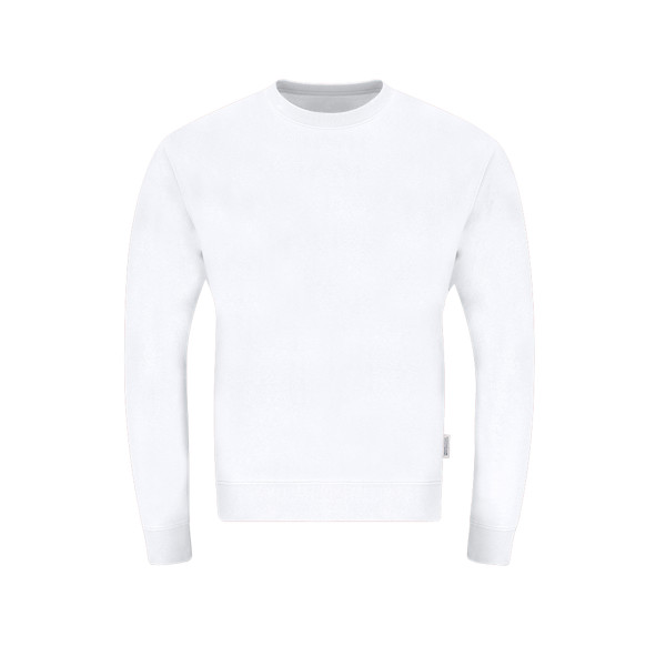 Sweatshirt unissexo em algodão orgânico e poliéster reciclado, em fleece acolchoado macio de 280 g/m². Com gola, punhos e barra em malha de rib elastano. Gola, punhos e barra em malha de rib spandex.